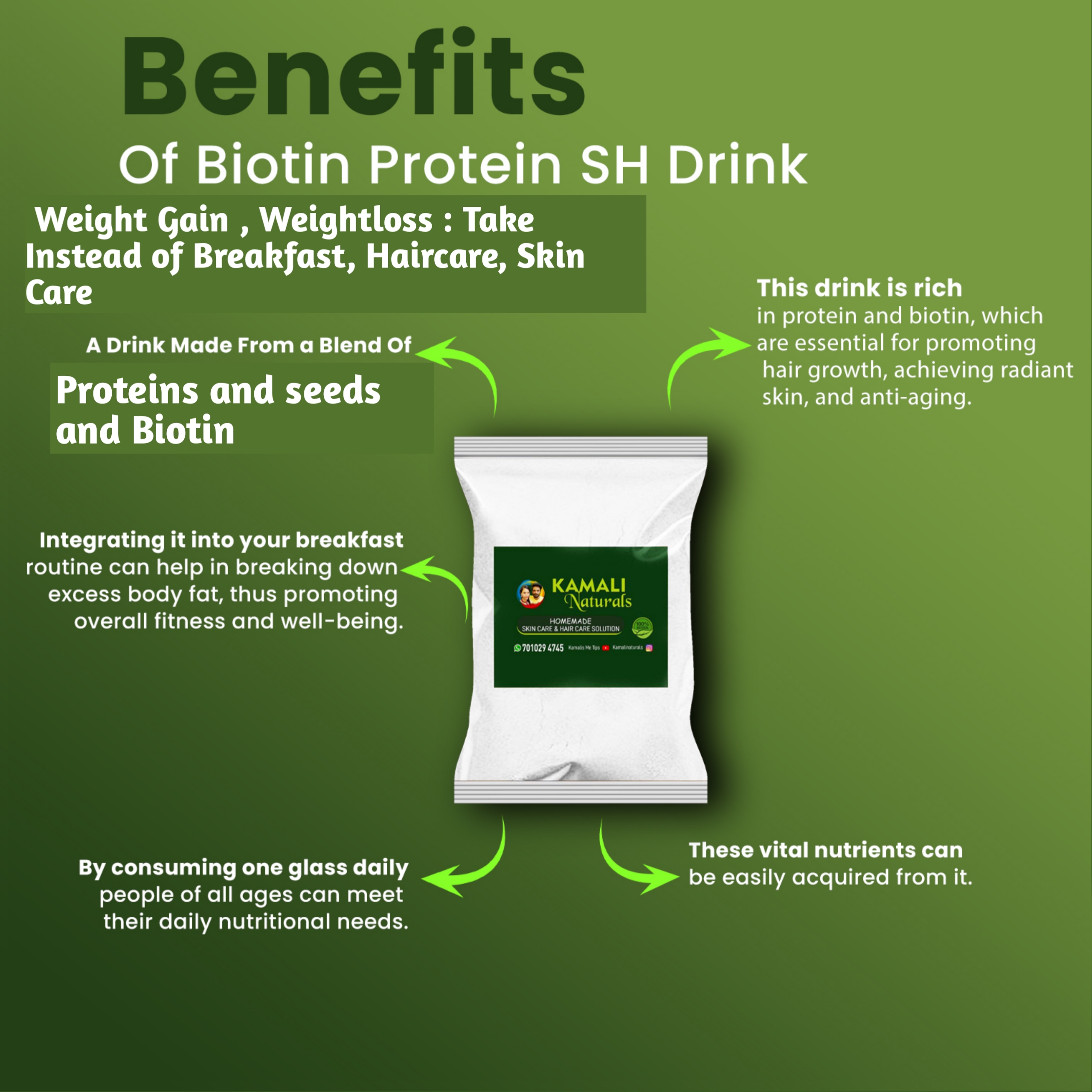 It has all the ingredients needed for hair growth, including herbs like drumstick leaves, and is made in a unique way.